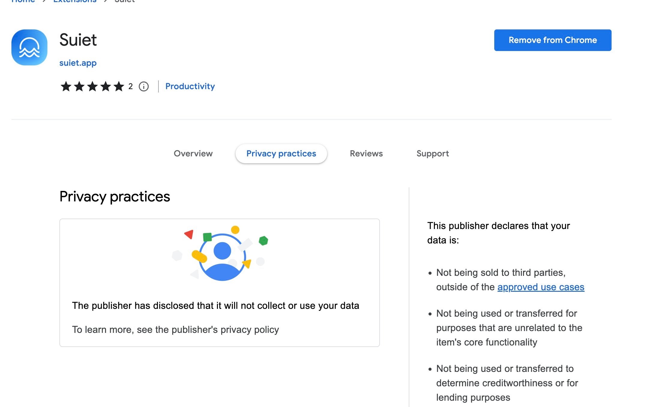 Ownership: ownership is the soul of the crypto world, and we embrace and defend this philosophy. Beyond tracking nothing from you, we even give you the source code ownership. You can do whatever you like based on the Suiet source code. Fork it if you don't like it.